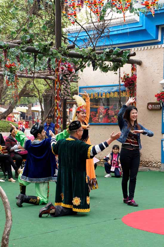看我们营销部美丽的林经理,也加入了跳新疆舞的行列。看那一举手一投足,姿势摆的有模有样,还有开怀的笑脸,丝毫不比专业的舞蹈演员逊色!