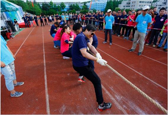 势均力敌。拔河项目历来是激情澎湃,扣人心弦的。加油呐喊声、口号声,一阵阵回响在运动场上。每个小组成员都拼尽全力,每个小组都在为荣誉而战。